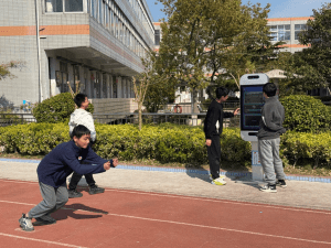 715随着智能设备发出起跑信号,山东莱西第二中学参加100米跑步测试的学生们迅速冲出起跑线,操场上展开了一场激烈的角逐。与以往的测试不同,这次测试在“AI”体育老师的全程监控下进行,所有学生的跑步成绩都由“AI”老师实时统计并及时播报。